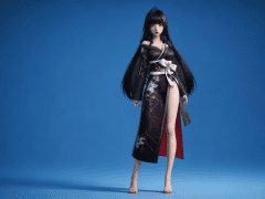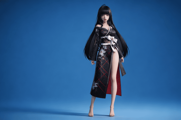 人物形象参考图2,写实风格,写真风格,建模3d皮肤,白嫩皮肤,美白滤镜,真人3d建模脸,超高分辨率,全身女,冷酷漠视,广角景深,高亮度,立体光,ue5建模,强对比,电影级特效,高挑修长,日系风格,纯色蓝色背景。3d动画渲染,壁纸。散射光,景深。