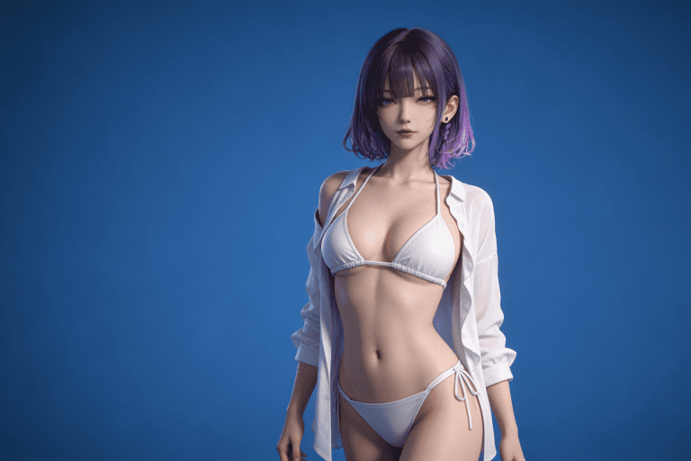 人物形象参考图2,写实风格,写真风格,建模3d皮肤,白嫩皮肤,美白滤镜,真人3d建模脸,超高分辨率,全身女,冷酷漠视,广角景深,高亮度,立体光,ue5建模,强对比,电影级特效,高挑修长,日系风格,纯色蓝色背景。3d动画渲染,壁纸。散射光,景深。