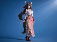 人物形象参考图2,写实风格,写真风格,建模3d皮肤,白嫩皮肤,美白滤镜,真人3d建模脸,超高分辨率,全身女,冷酷漠视,广角景深,高亮度,立体光,ue5建模,强对比,电影级特效,高挑修长,日系风格,纯色蓝色背景。3d动画渲染,壁纸。散射光,景深。