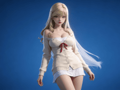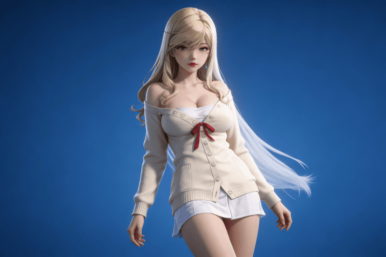 人物形象参考图2,写实风格,写真风格,建模3d皮肤,白嫩皮肤,美白滤镜,真人3d建模脸,超高分辨率,全身女,冷酷漠视,广角景深,高亮度,立体光,ue5建模,强对比,电影级特效,高挑修长,日系风格,纯色蓝色背景。3d动画渲染,壁纸。散射光,景深。