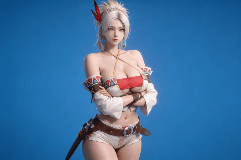 人物形象参考图2,写实风格,写真风格,建模3d皮肤,白嫩皮肤,美白滤镜,真人3d建模脸,超高分辨率,全身女,冷酷漠视,广角景深,高亮度,立体光,ue5建模,强对比,电影级特效,高挑修长,日系风格,纯色蓝色背景。3d动画渲染,壁纸。散射光,景深。