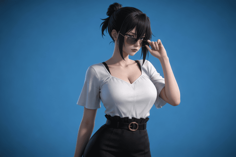 人物形象参考图2,写实风格,写真风格,建模3d皮肤,白嫩皮肤,美白滤镜,真人3d建模脸,超高分辨率,全身女,冷酷漠视,广角景深,高亮度,立体光,ue5建模,强对比,电影级特效,高挑修长,日系风格,纯色蓝色背景。3d动画渲染,壁纸。散射光,景深。