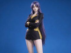 人物形象参考图2,写实风格,写真风格,建模3d皮肤,白嫩皮肤,美白滤镜,真人3d建模脸,超高分辨率,全身女,冷酷漠视,广角景深,高亮度,立体光,ue5建模,强对比,电影级特效,高挑修长,日系风格,纯色蓝色背景。3d动画渲染,壁纸。散射光,景深。