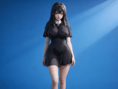 人物形象参考图2,写实风格,写真风格,建模3d皮肤,白嫩皮肤,美白滤镜,真人3d建模脸,超高分辨率,全身女,冷酷漠视,广角景深,高亮度,立体光,ue5建模,强对比,电影级特效,高挑修长,日系风格,纯色蓝色背景。3d动画渲染,壁纸。散射光,景深。