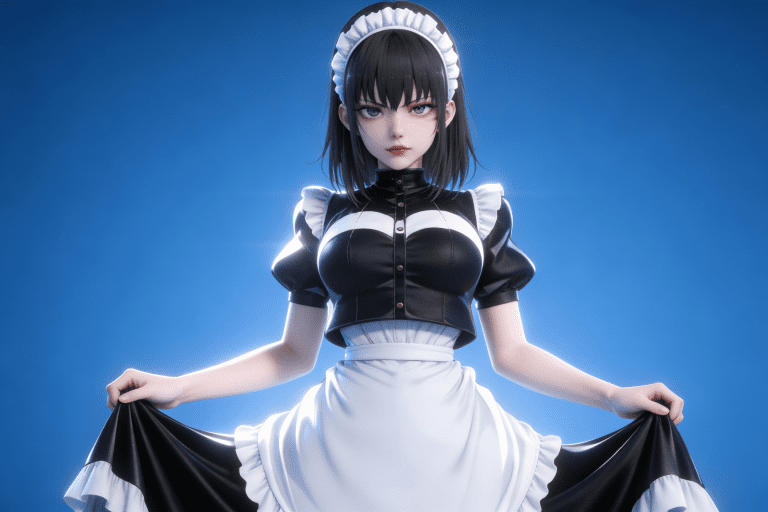 人物形象参考图2,写实风格,写真风格,建模3d皮肤,白嫩皮肤,美白滤镜,真人3d建模脸,超高分辨率,全身女,冷酷漠视,广角景深,高亮度,立体光,ue5建模,强对比,电影级特效,高挑修长,日系风格,纯色蓝色背景。3d动画渲染,壁纸。散射光,景深。
