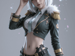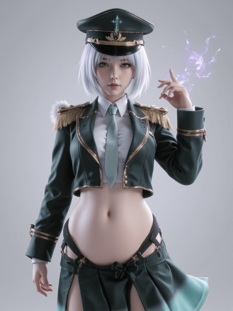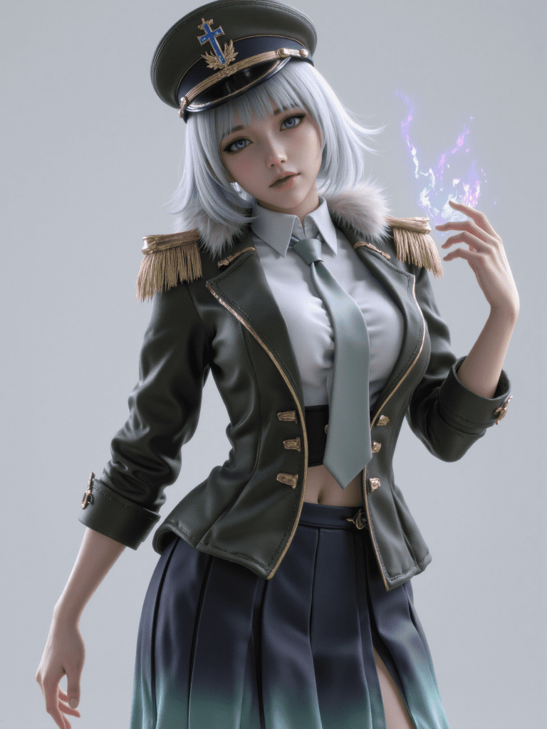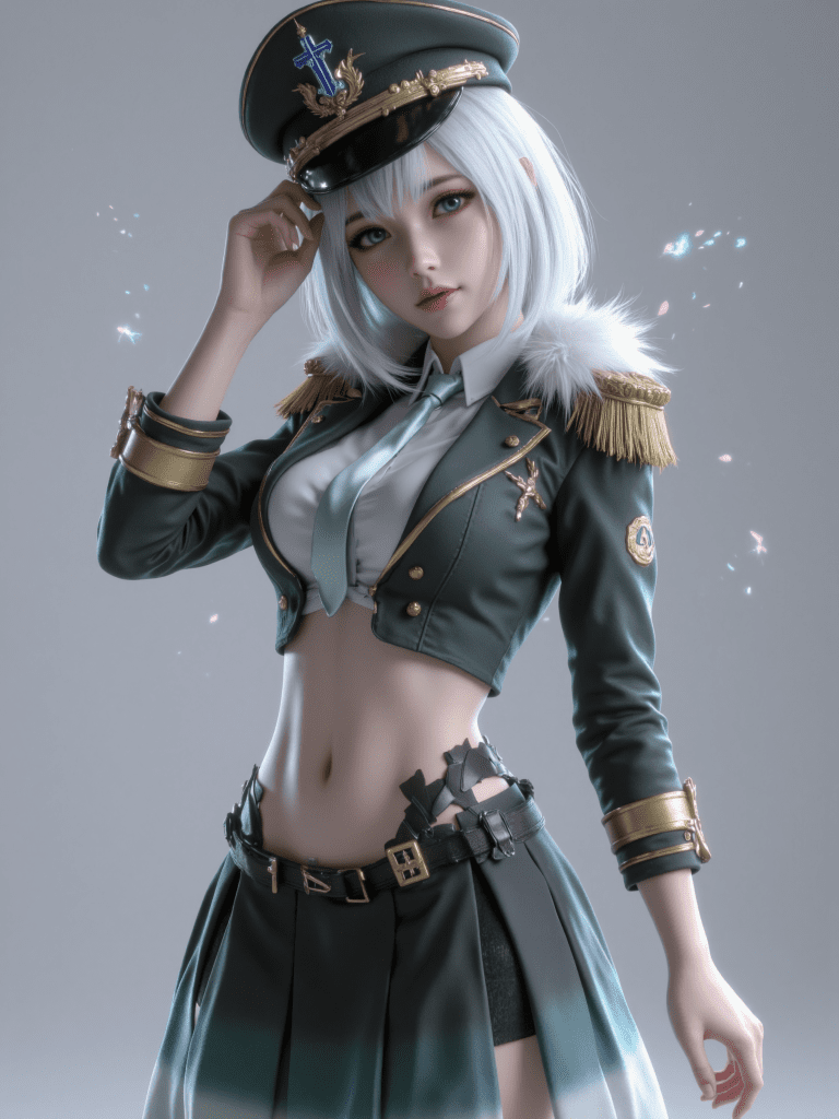 Xian1,1 girl,solo,short hair,light blue hair,choppy bangs,short bangs,hair between eyes,blue eyes,military hat,gold trim,blue cross emblem,hat ornament,