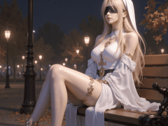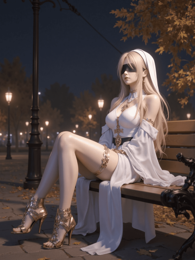 shengnvyifu,shengnv black blindfold,shengnv blindfold,shengnv covered eyes,shengnv jewelry,shengnv white dress,shengnv nun,shengnv necklace,shengnv white gloves,shengnv bridal gauntlets,shengnv covered navel,shengnv detached sleeves,shengnv golden gladiator sandals,shengnv nun kerchief,large breasts,shengnv sideboob,shengnv sideless outfit,shengnv white nun kerchief,
