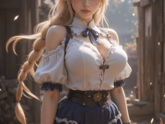 Klaudia1,long hair,side braid,hairband,hair bow,white bow,pink bow,blonde hair,green eyes,