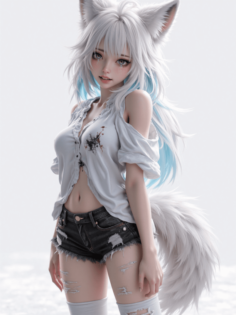BREAK white and blue hair,two toned hair,wolf girl,messy hair,messy tail,angry,grinding teeth,sharp teeth,iceblue eyes,slit pupils,yellow pupils,tear-stained eyes,teary,sad,lips,scratch marks on face,scratch marks,on thighs,