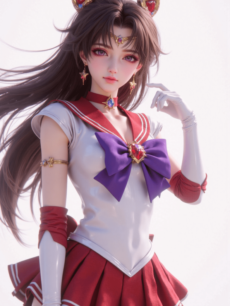 shirt,gloves,bow,white shirt,short sleeves,sleeveless,collared shirt,choker,elbow gloves,white gloves,bowtie,sailor collar,red bow,purple bow,red choker,purple bowtie,sailor senshi uniform,red gemstone,red sailor collar,