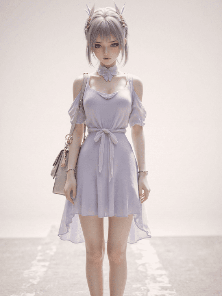 8K,pale skin,white skin,shinny skin,light vibe,Unreal Engine 5 ray tracing,hyper-detailed pore-level skin texture,cg style,cinematic lighting,Long exposure style,white background,simple background,looking at viewer,standing,
