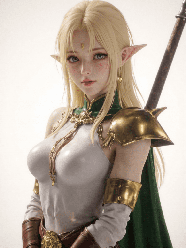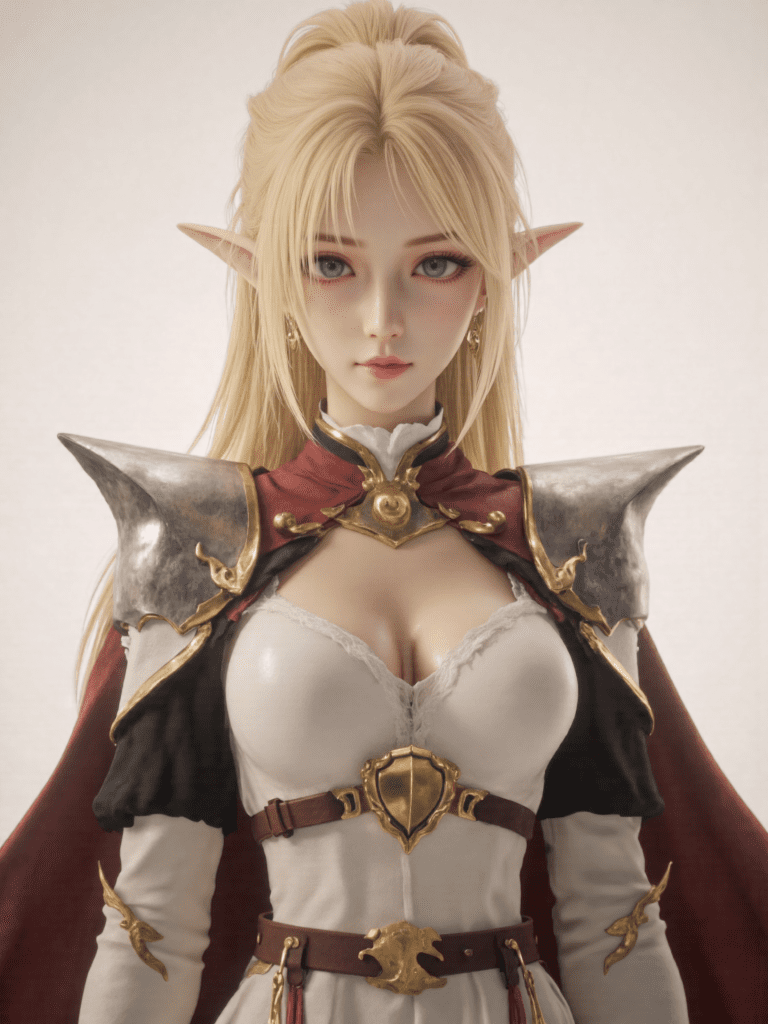 masterpiece,best quality,retro artstyle,anime coloring,anime screencap,d33dlit,1girl,solo,blonde hair,pointy ears,elf,circlet,sleeveless,armor,pauldrons,cape,dynamic pose,looking at viewer,high,tall,