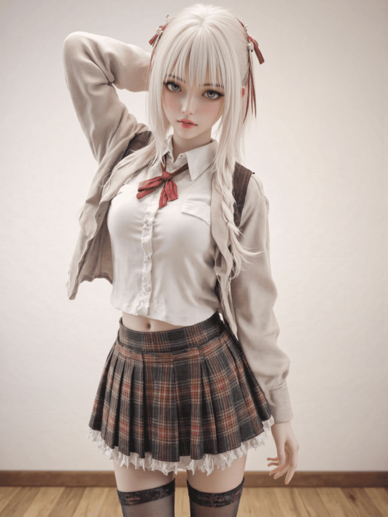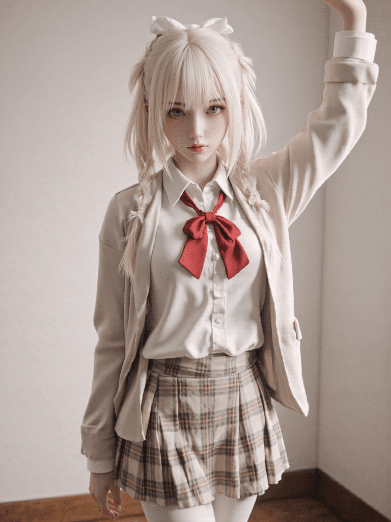 8K,pale skin,white skin,shinny skin,light vibe,Unreal Engine 5 ray tracing,hyper-detailed pore-level skin texture,cg style,cinematic lighting,Long exposure style,white background,simple background,looking at viewer,standing,