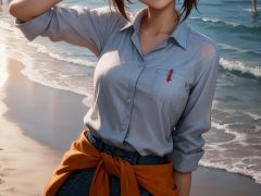 一个女生cosplay,完美身材,九头身比例,真人写真,真人版,身穿参考图中人物的衣服。人脸精度达毛孔级可见,写实真人,极致细节,衣服材质细腻,质感光照的摄影风格,HDR写实质感,肌理感,电影灯光效果,超写实摄影,oc渲染,明亮的照片风格。