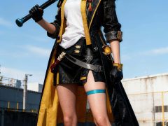 一个女生cosplay,完美身材,九头身比例,真人写真,真人版,身穿参考图中人物的衣服。人脸精度达毛孔级可见,写实真人,极致细节,衣服材质细腻,质感光照的摄影风格,HDR写实质感,肌理感,电影灯光效果,超写实摄影,oc渲染,明亮的照片风格。换个姿势,随机背景。提高对比度,并锐化图像。