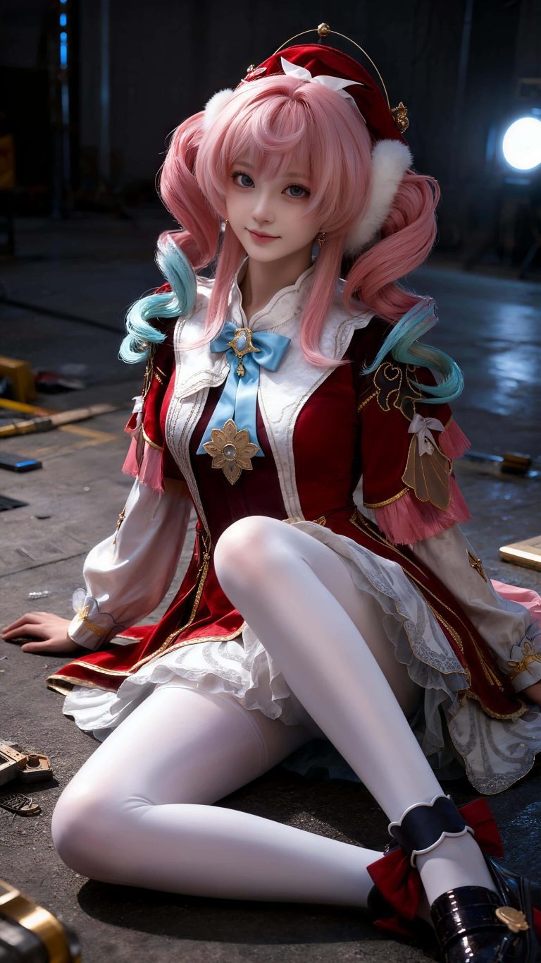 一个女生cosplay,完美身材,九头身比例,真人写真,真人版,身穿参考图中人物的衣服。人脸精度达毛孔级可见,写实真人,极致细节,衣服材质细腻,质感光照的摄影风格,HDR写实质感,肌理感,电影灯光效果,超写实摄影,oc渲染,明亮的照片风格。随机姿势,随机背景。提高对比度,并锐化图像。