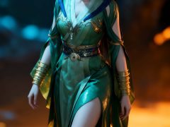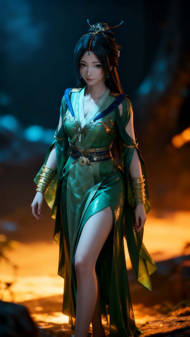 凡人修仙传风格,女修士,身穿参考图中人物的衣服。魅惑又天真,电影级冷暖光对冲,明暗高对比,细腻肌肤,柔焦虚化背景,“全身像”。随机姿势。随机背景。极致细节,肌理反光,折射光影,光影弥散,抽象表达,艺术氛围,情绪表达和叙事,艺术插画,超现实主义美学,高级的氛围感,层次感,oc渲染。UE5渲染。