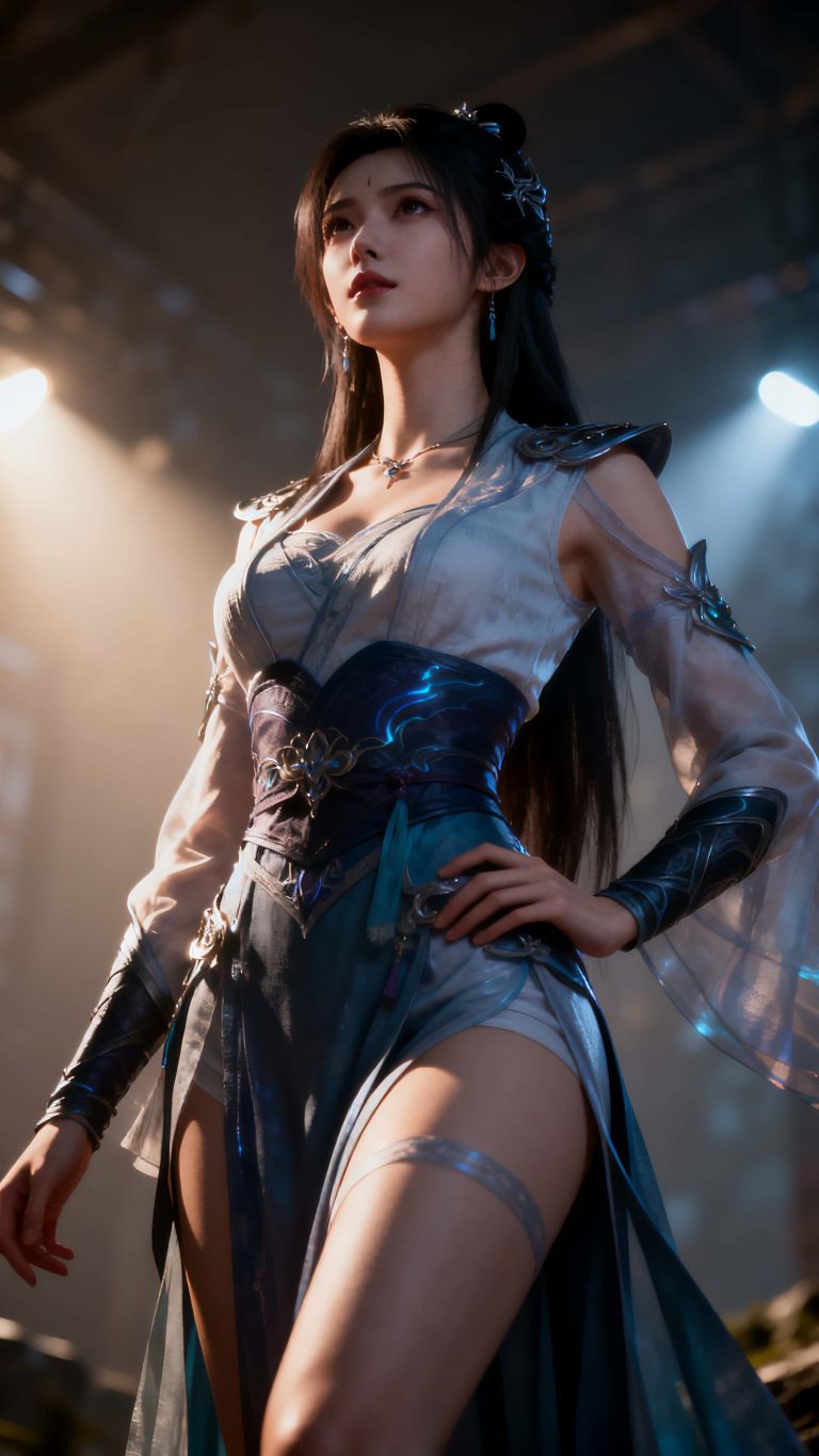 凡人修仙传,女修士,电影质感,中景,仰拍角度,绝世美女,写实真人,极繁主义,轮廓光,模特身材,大师杰作,细节清晰详尽,运用弥散光和轮廓光特写,采用光线追踪和电影光效呈现流体效果,伦勃朗光,高反差,摆出完美的形体造型,完美构图,超现实摄影效果,高对比度,浅景深,背景虚化,ue5渲染