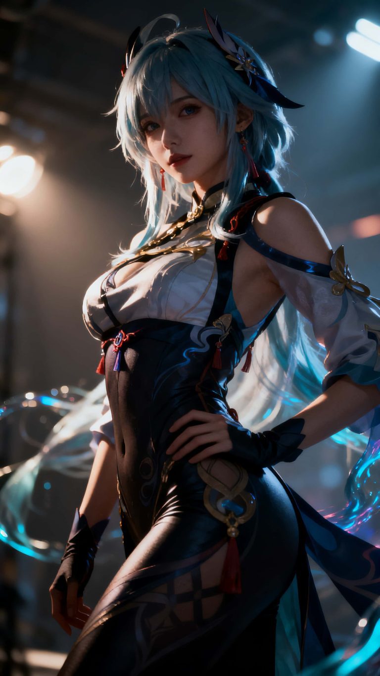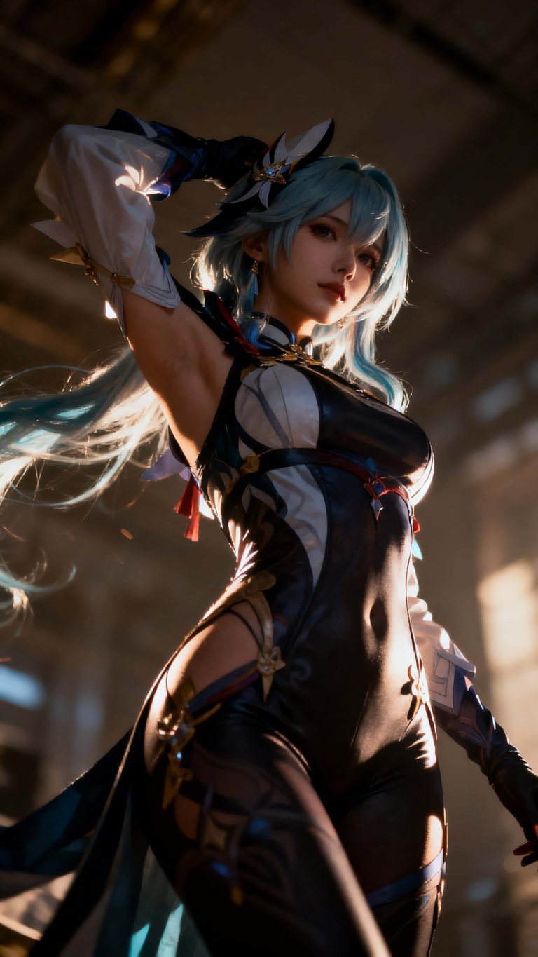 优菈,电影质感,中景,绝世美女,写实真人,极繁主义,轮廓光,模特身材,大师杰作,细节清晰详尽,运用弥散光和轮廓光特写,采用光线追踪和电影光效呈现流体效果,伦勃朗光,高反差,摆出完美的形体造型,完美构图,超现实摄影效果,高对比度,浅景深,背景虚化,ue5渲染,