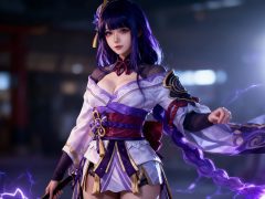 身穿参考图中人物的服装,雷电将军,电影质感,中景,绝世美女,写实真人,极繁主义,轮廓光,模特身材,大师杰作,细节清晰详尽,运用弥散光和轮廓光特写,采用光线追踪和电影光效呈现流体效果,伦勃朗光,高反差,摆出完美的形体造型,完美构图,超现实摄影效果,高对比度,浅景深,背景虚化,ue5渲染,不要出现文字,随机姿势。