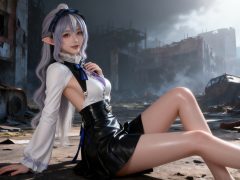 身穿参考图1中人物的服装,使用参考图2中的体型,少女,人物全身3D精美建模,国风3D建模脸,“加强脸部的立体效果”,精致的脸,3D高精度建模渲染皮肤,白皙柔嫩的皮肤,肌肤白嫩水光光泽,电影质感,体积光反射,光弥散,远景,绝世美女,写实真人,九头身模特身材,大长腿,大师杰作,细节清晰详尽,不要出现文字,随机pose,末日场景。oc渲染,辛烷值渲染,细节拉满,质感厚重,空气感,气质独特,动作诱人,随机元素堆叠组成,画面明亮。视觉盛宴,渲染直出。摄影后期处理。梦核。曼妙身材,大长腿,角色扮演,究极细节,大师级光影,真实服装效果,服装细节质感。3D国风动漫,细腻的皮肤,干净无暇的真实皮肤,CG渲染,氛围感,光感,自然姿势,HDR环境光,运用弥散光和轮廓光特写,采用光线追踪和电影光效呈现流体效果,伦勃朗光。成女体型。