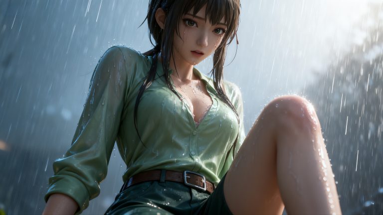 身穿参考图1中人物的服装,使用参考图2中的体型,少女,人物全身3D精美建模,国风3D建模脸,“加强脸部的立体效果”,精致的脸,3D高精度建模渲染皮肤,白皙柔嫩的皮肤,肌肤白嫩水光光泽,电影质感,体积光反射,光弥散,远景,绝世美女,写实真人,九头身模特身材,大长腿,大师杰作,细节清晰详尽,不要出现文字,随机pose,下雨场景。人物全身淋湿,脸部湿润,无助的表情,oc渲染,辛烷值渲染,细节拉满,质感厚重,空气感,气质独特,动作诱人,随机元素堆叠组成,画面明亮。视觉盛宴,渲染直出。摄影后期处理。梦核。曼妙身材,大长腿,角色扮演,究极细节,大师级光影,真实服装效果,服装细节质感。3D国风动漫,细腻的皮肤,干净无暇的真实皮肤,CG渲染,氛围感,光感,自然姿势,HDR环境光,运用弥散光和轮廓光特写,采用光线追踪和电影光效呈现流体效果,伦勃朗光。成女体型。