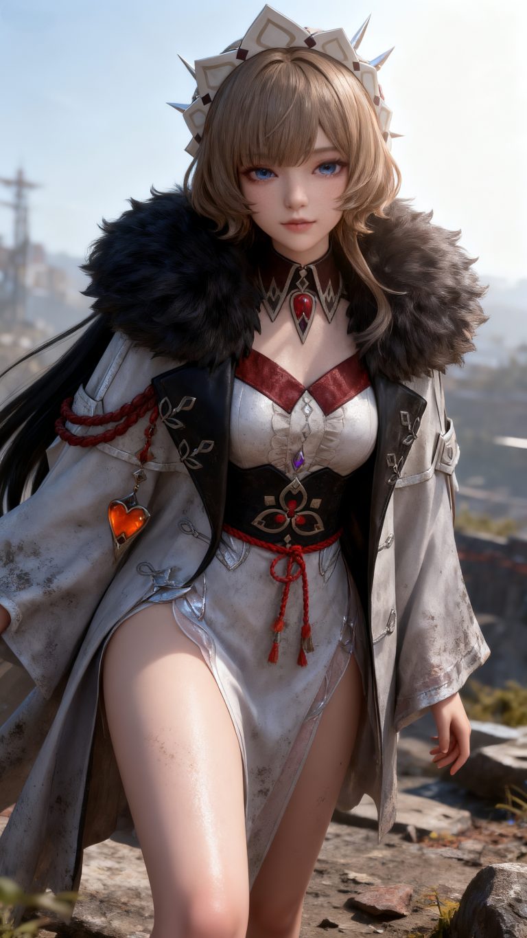身穿参考图1中人物的服装和发型,使用参考图2中的体型和脸,少女,人物全身3D精美建模,国风3D建模脸,精致的脸,3D高精度建模渲染皮肤,白皙柔嫩的皮肤,肌肤白嫩水光光泽,电影质感,远景,绝世美女,写实真人,九头身模特身材,大长腿,大师杰作,细节清晰详尽,随机pose,随机场景,oc渲染,辛烷值渲染,画面明亮。视觉盛宴,渲染直出。摄影后期处理。曼妙身材,大长腿,角色扮演,天真无辜表情,基于物理效果(漫反射,伦勃朗光,辉光,重力感,厚实感,光与暗鲜明对比),材质(次世代材质,PBR材质肌肤,灰尘,超详细,细节复杂,质感细腻)