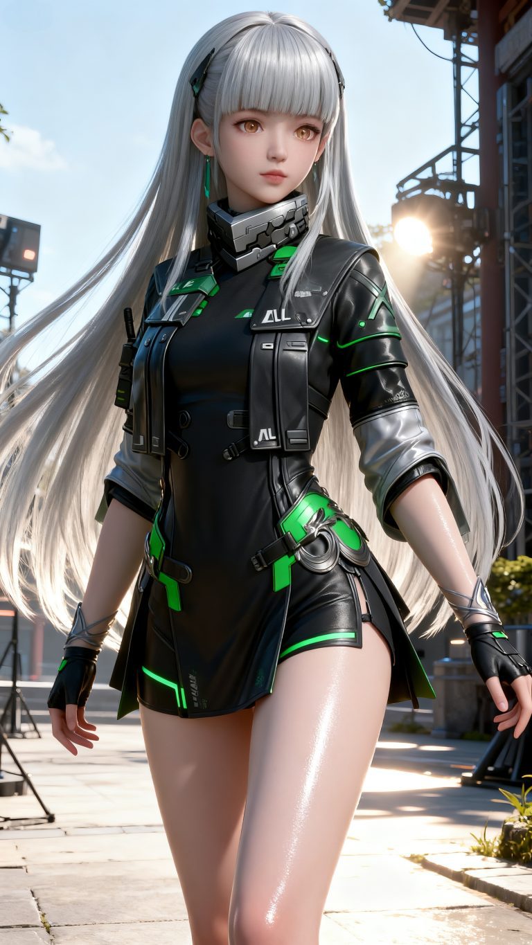 身穿参考图1中人物的服装和发型,使用参考图2中的体型和脸,少女,人物全身3D精美建模,国风3D建模脸,精致的脸,3D高精度建模渲染皮肤,白皙柔嫩的皮肤,肌肤白嫩水光光泽,电影质感,远景,绝世美女,写实真人,九头身模特身材,大长腿,大师杰作,细节清晰详尽,随机pose,随机场景,oc渲染,辛烷值渲染,画面明亮。视觉盛宴,渲染直出。摄影后期处理。曼妙身材,大长腿,角色扮演,天真无辜表情,基于物理效果(漫反射,伦勃朗光,辉光,重力感,厚实感,光与暗鲜明对比),材质(次世代材质,PBR材质肌肤,灰尘,超详细,细节复杂,质感细腻)