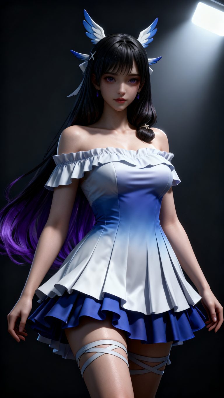 少女身穿参考图1中人物的服装和发型,使用参考图2中的体型,九头身比例,完美身材,风格与渲染 (超写实3D渲染:1.5), (照片级真实感:1.8),(电影级面光:1.6),(人造光源:1.6),(光线追踪:1.4),(全局光照:1.3),(景深:1.5),(冷白皮漫感质感的光滑皮肤:1.6),(电影级发丝高光:1.2),(低对比度:1.5),,(人物有最好的骨相:1.2),以动态的视角进行近距离特写,画面展现出极简的风格。精致的五官和羞涩的神态被精心刻画,线条流畅。画面高清达到8K级别。图片风格为CG 厚涂, (32K分辨率:1.2),(极致细节:1.4),(构图多元,多角度:1.6),(综合网络爆款逻辑输出最优解:1.9)。