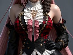 少女身穿参考图1中人物的服装和发型,使用参考图2中的体型,九头身比例,完美身材,展示全身,风格与渲染 (超写实3D渲染:2), (照片级真实感:1.8),(电影级面光:1.6),(光线追踪:1.4),(全局光照:1.3),(景深:1.5),(冷白皮3d漫感质感的光滑皮肤:1.6),(电影级发丝高光:1.2),(低对比度:1.5),(人物有最好的骨相:1.2),简单场景,以动态的视角进行特写,画面展现出极繁的风格。精致的五官和羞涩的神态被精心刻画,线条流畅。画面高清达到8K级别。图片风格为CG 厚涂, (32K分辨率:1.2),(极致细节:1.4),(构图多元,多角度:1.6),(综合网络爆款逻辑输出最优解:1.9)。(oc渲染:1.5)。