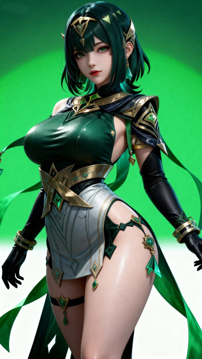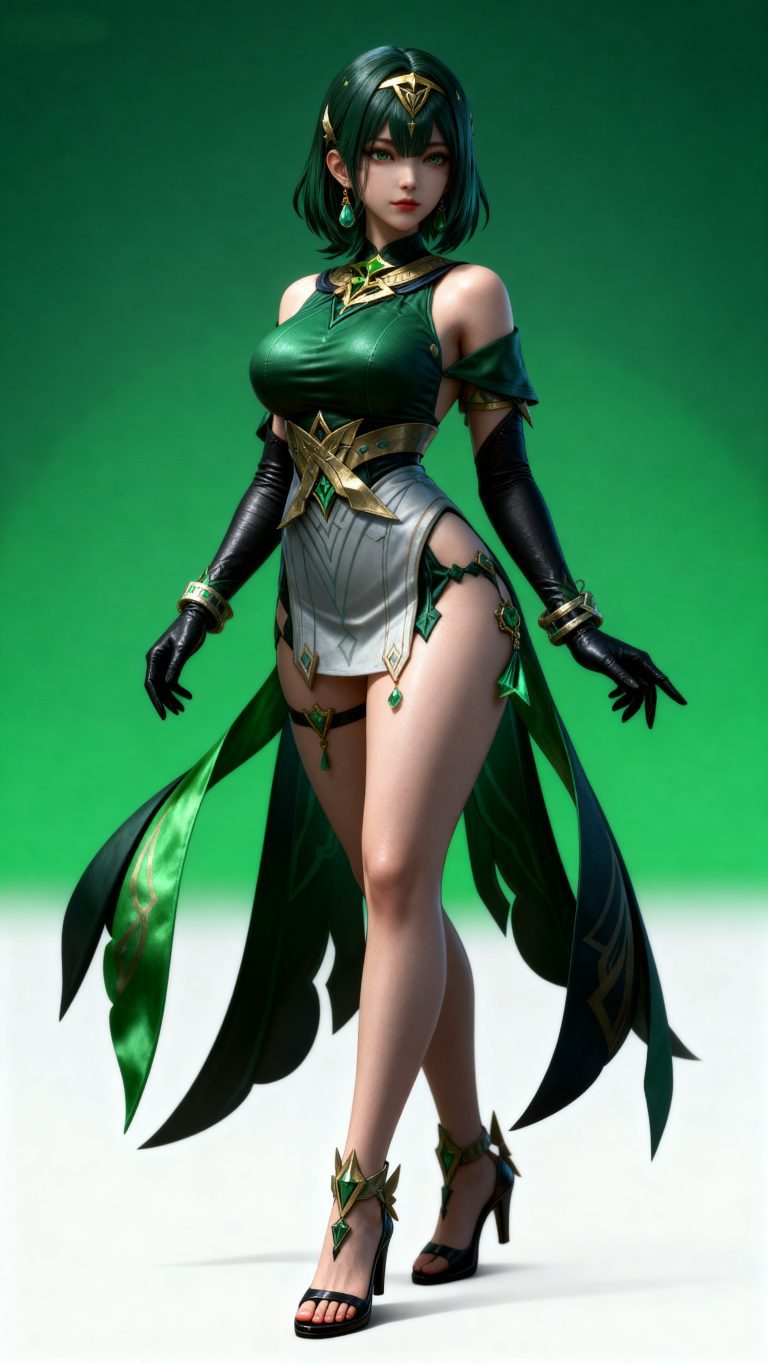 少女身穿参考图1中人物的服装和发型,使用参考图2中的体型,九头身比例,完美身材,全身像,风格与渲染 (超写实3D渲染:2), (照片级真实感:1.8),(电影级面光:1.6),(光线追踪:1.4),(全局光照:1.3),(景深:1.5),(冷白皮3d漫感质感的光滑皮肤:1.6),(电影级发丝高光:1.2),(低对比度:1.5),(人物有最好的骨相:1.2),简单场景,以动态的视角进行特写,画面展现出极繁的风格。精致的五官和魅惑的神态被精心刻画,线条流畅。画面高清达到8K级别。图片风格为CG 厚涂, (32K分辨率:1.2),(极致细节:1.4),(构图多元,多角度:1.6),(综合网络爆款逻辑输出最优解:1.9)。(oc渲染:1.5)。
