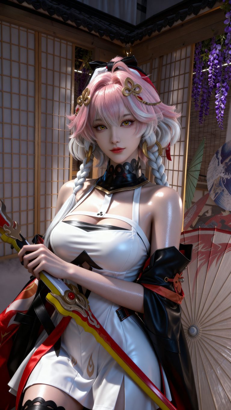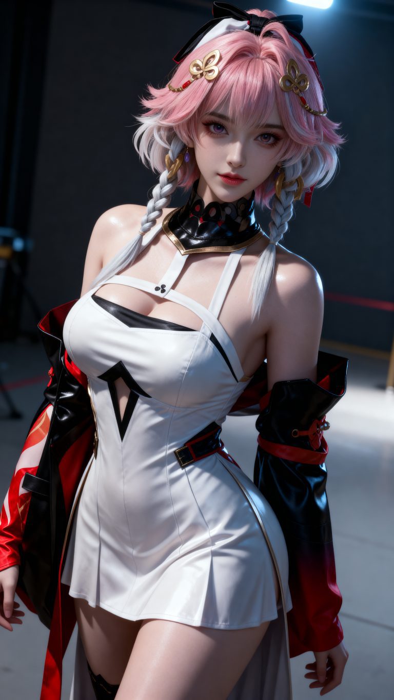少女身穿参考图1中人物的服装和发型,使用参考图2中的体型,九头身比例,完美身材,全身像,风格与渲染 (超写实3D渲染:2), (照片级真实感:1.8),(电影级面光:1.6),(光线追踪:1.4),(全局光照:1.3),(景深:1.5),(冷白皮3d漫感质感的光滑皮肤:1.6),(电影级发丝高光:1.2),(低对比度:1.5),(人物有最好的骨相:1.2),简单场景,以动态的视角进行特写,画面展现出极繁的风格。精致的五官和魅惑的神态被精心刻画,线条流畅。画面高清达到8K级别。图片风格为CG 厚涂, (32K分辨率:1.2),(极致细节:1.4),(构图多元,多角度:1.6),(综合网络爆款逻辑输出最优解:1.9)。(oc渲染:1.5)。