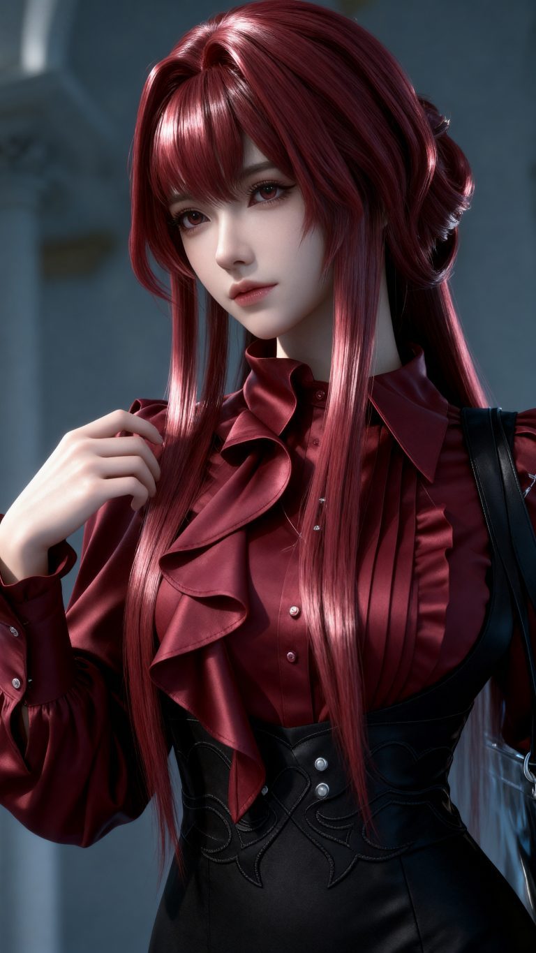 少女身穿参考图1中人物的服装和发型,使用参考图2中的体型,九头身比例,完美身材,全身像,风格与渲染 (超写实3D渲染:2), (照片级真实感:1.8),(电影级面光:1.6),(光线追踪:1.4),(全局光照:1.3),(景深:1.5),(冷白皮3d漫感质感的光滑皮肤:1.6),(电影级发丝高光:1.2),(低对比度:1.5),(人物有最好的骨相:1.2),简单场景,以动态的视角进行特写,画面展现出极繁的风格。精致的五官和魅惑的神态被精心刻画,线条流畅。画面高清达到8K级别。图片风格为CG 厚涂, (32K分辨率:1.2),(极致细节:1.4),(构图多元,多角度:1.6),(综合网络爆款逻辑输出最优解:1.9)。(oc渲染:1.5)。