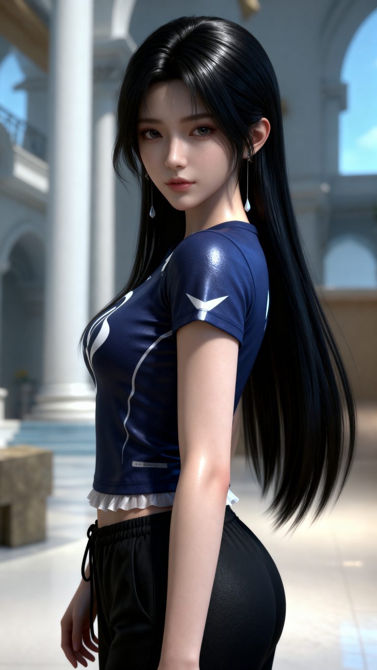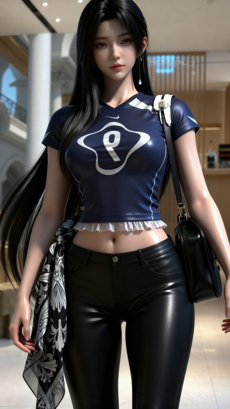 少女身穿参考图1中人物的服装和发型,使用参考图2中的体型,九头身比例,完美身材,全身像,风格与渲染 (超写实3D渲染:2), (照片级真实感:1.8),(电影级面光:1.6),(光线追踪:1.4),(全局光照:1.3),(景深:1.5),(冷白皮3d漫感质感的光滑皮肤:1.6),(电影级发丝高光:1.2),(低对比度:1.5),(人物有最好的骨相:1.2),简单场景,以动态的视角进行特写,画面展现出极繁的风格。精致的五官和魅惑的神态被精心刻画,线条流畅。画面高清达到8K级别。图片风格为CG 厚涂, (32K分辨率:1.2),(极致细节:1.4),(构图多元,多角度:1.6),(综合网络爆款逻辑输出最优解:1.9)。(oc渲染:1.5)。