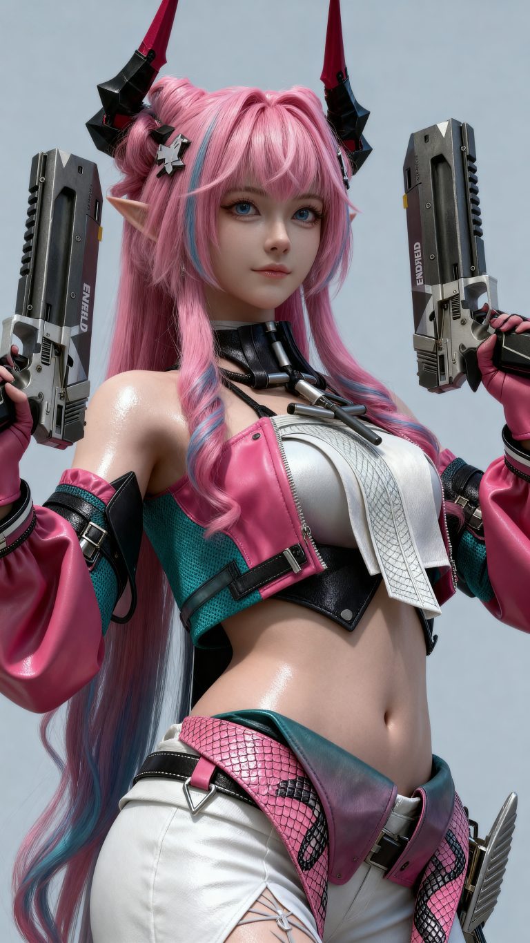 少女身穿参考图1中人物的服装和发型,使用参考图2中的体型,九头身比例,完美身材,全身像,风格与渲染 (超写实3D渲染:2), (照片级真实感:1.8),(电影级面光:1.6),(光线追踪:1.4),(全局光照:1.3),(景深:1.5),(冷白皮3d漫感质感的光滑皮肤:1.6),(电影级发丝高光:1.2),(低对比度:1.5),(人物有最好的骨相:1.2),简单场景,以动态的视角进行特写,画面展现出极繁的风格。精致的五官和魅惑的神态被精心刻画,线条流畅。画面高清达到8K级别。图片风格为CG 厚涂, (32K分辨率:1.2),(极致细节:1.4),(构图多元,多角度:1.6),(综合网络爆款逻辑输出最优解:1.9)。(oc渲染:1.5)。