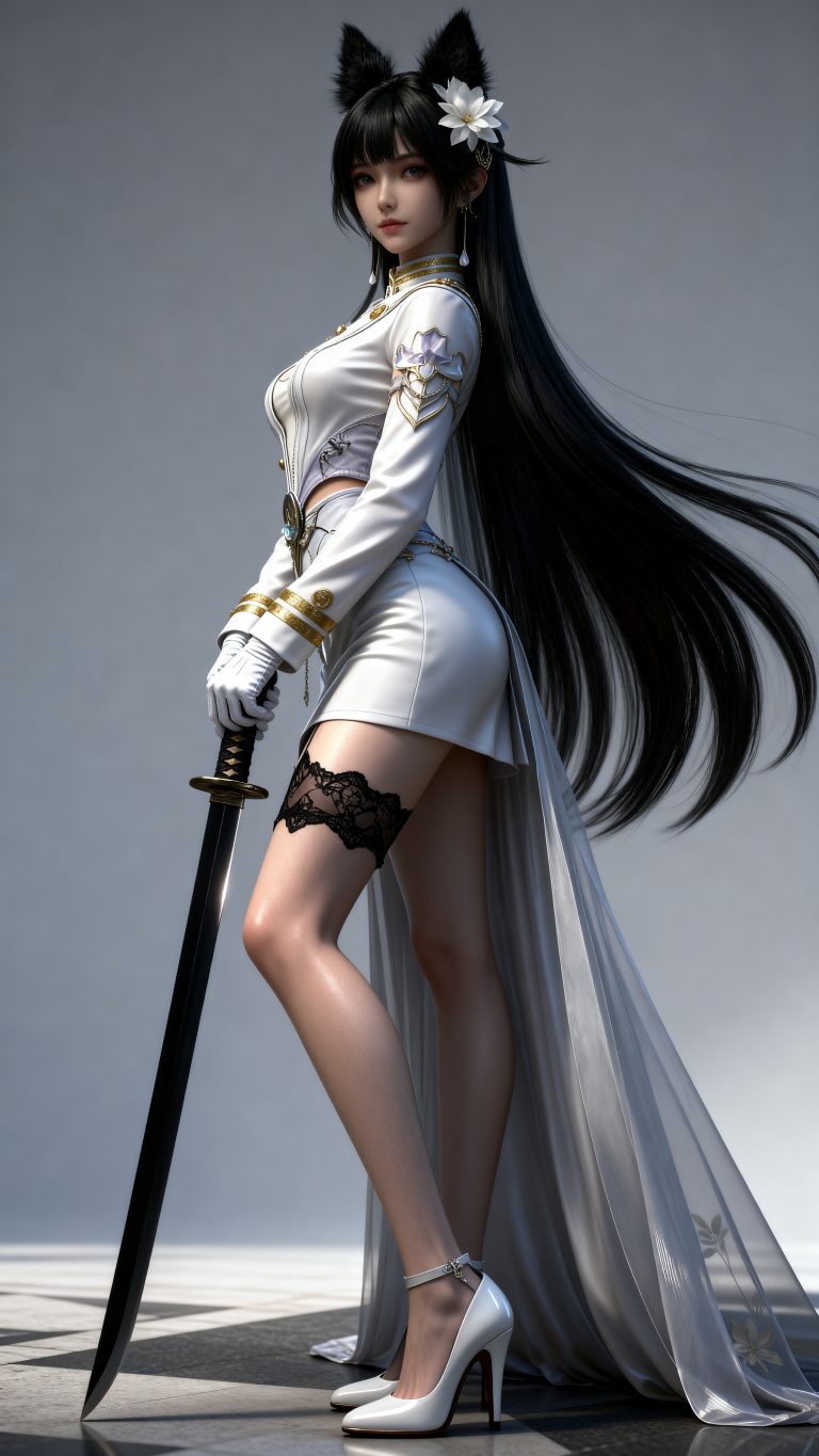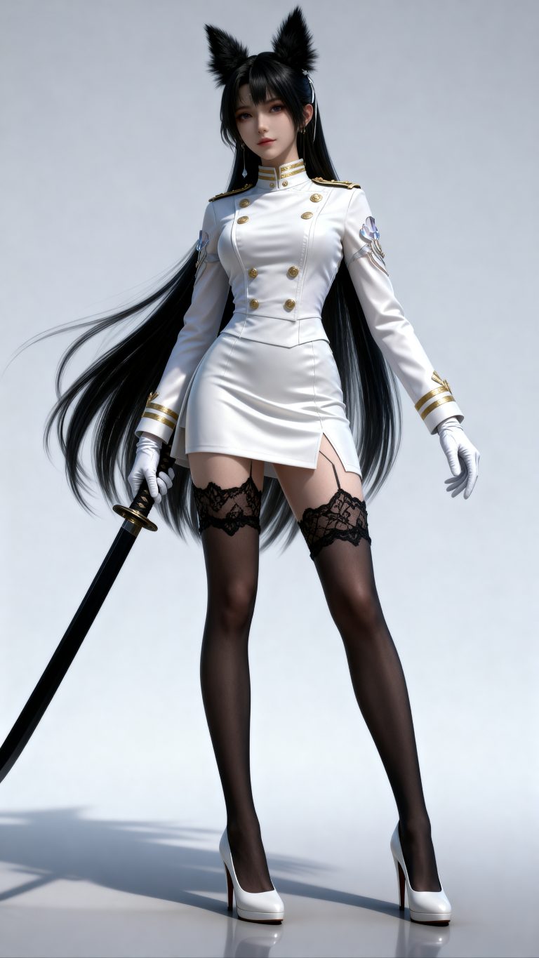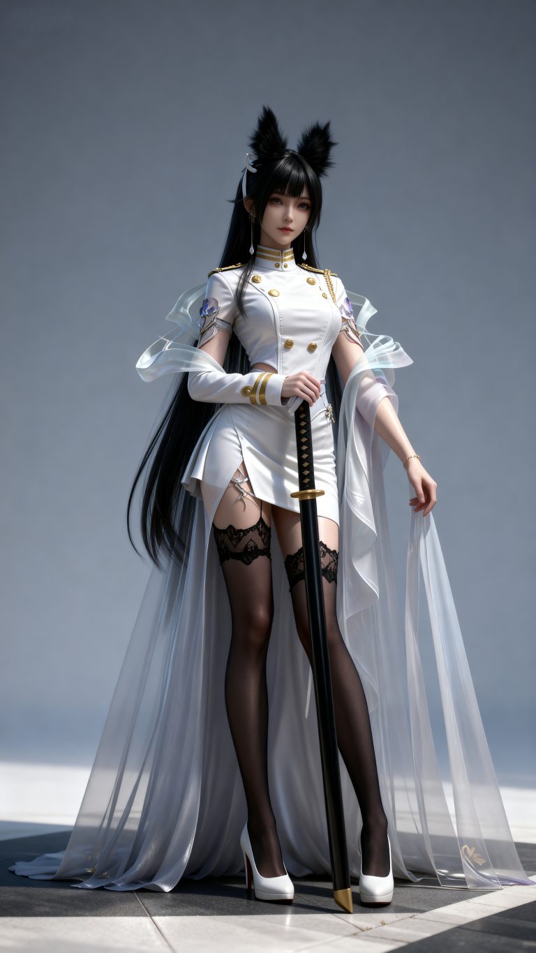 少女身穿参考图1中人物的服装和发型,使用参考图2中的体型,九头身比例,完美身材,全身像,风格与渲染 (超写实3D渲染:2), (照片级真实感:1.8),(电影级面光:1.6),(光线追踪:1.4),(全局光照:1.3),(景深:1.5),(冷白皮3d漫感质感的光滑皮肤:1.6),(电影级发丝高光:1.2),(低对比度:1.5),(人物有最好的骨相:1.2),简单场景,以动态的视角进行特写,画面展现出极繁的风格。精致的五官和魅惑的神态被精心刻画,线条流畅。画面高清达到8K级别。图片风格为CG 厚涂, (32K分辨率:1.2),(极致细节:1.4),(构图多元,多角度:1.6),(综合网络爆款逻辑输出最优解:1.9)。(oc渲染:1.5)。
