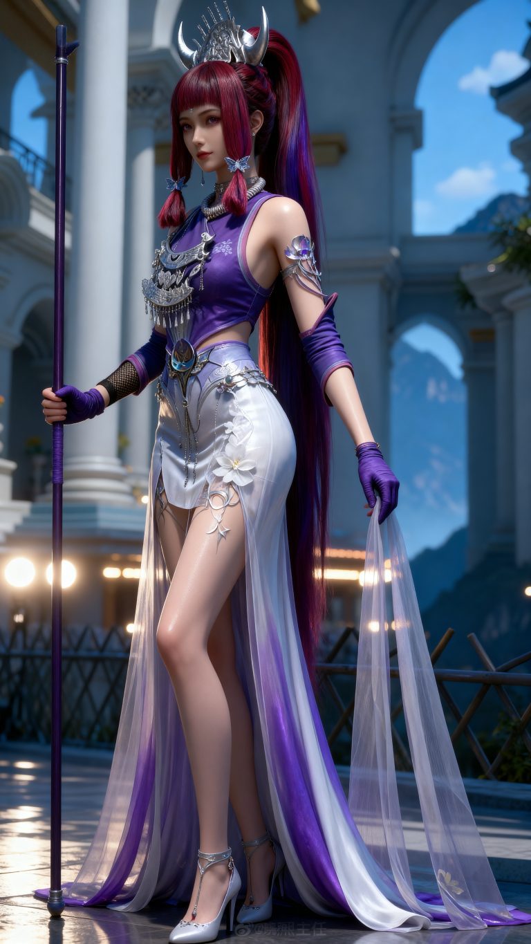 少女身穿参考图1中人物的服装和发型,使用参考图2中的体型,九头身比例,完美身材,全身像,风格与渲染 (超写实3D渲染:2), (照片级真实感:1.8),(电影级面光:1.6),(光线追踪:1.4),(全局光照:1.3),(景深:1.5),(冷白皮3d漫感质感的光滑皮肤:1.6),(电影级发丝高光:1.2),(低对比度:1.5),(人物有最好的骨相:1.2),简单场景,以动态的视角进行特写,画面展现出极繁的风格。精致的五官和魅惑的神态被精心刻画,线条流畅。画面高清达到8K级别。图片风格为CG 厚涂, (32K分辨率:1.2),(极致细节:1.4),(构图多元,多角度:1.6),(综合网络爆款逻辑输出最优解:1.9)。(oc渲染:1.5)。