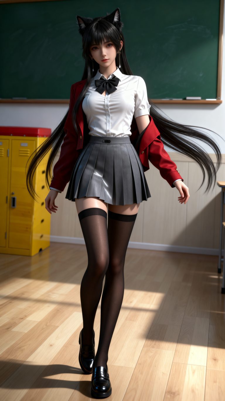 少女身穿参考图1中人物的服装、发型和背景,使用参考图2中的体型,九头身比例,完美身材,全身像,风格与渲染 (超写实3D渲染:2), (照片级真实感:1.8),(电影级面光:1.6),(光线追踪:1.4),(全局光照:1.3),(景深:1.5),(冷白皮3d漫感质感的光滑皮肤:1.6),(电影级发丝高光:1.2),(低对比度:1.5),(人物有最好的骨相:1.2),随机场景,以动态的视角进行特写,画面展现出极繁的风格。精致的五官和魅惑的神态被精心刻画,线条流畅。画面高清达到8K级别。图片风格为CG 厚涂, (32K分辨率:1.2),(极致细节:1.4),(构图多元,多角度:1.6),(综合网络爆款逻辑输出最优解:1.9)。(oc渲染:1.5)。空气透视层次,皮肤环境色反射。浅景深。消失点构图。发丝光。