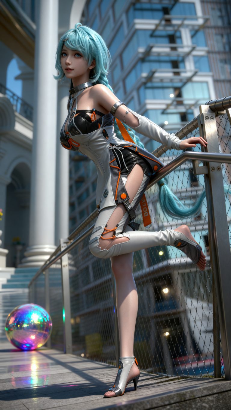 少女身穿参考图1中人物的服装、发型和背景,使用参考图2中的体型,九头身比例,完美身材,全身像,风格与渲染 (超写实3D渲染:2), (照片级真实感:1.8),(电影级面光:1.6),(光线追踪:1.4),(全局光照:1.3),(景深:1.5),(冷白皮3d漫感质感的光滑皮肤:1.6),(电影级发丝高光:1.2),(低对比度:1.5),(人物有最好的骨相:1.2),随机场景,以动态的视角进行特写,画面展现出极繁的风格。精致的五官和魅惑的神态被精心刻画,线条流畅。画面高清达到8K级别。图片风格为CG 厚涂, (32K分辨率:1.2),(极致细节:1.4),(构图多元,多角度:1.6),(综合网络爆款逻辑输出最优解:1.9)。(oc渲染:1.5)。空气透视层次,皮肤环境色反射。消失点构图。明亮的画面。3d人物渲染,肌理感,写实逼真,清透的肌肤,清澈单纯的眼神,虚拟引擎背景渲染,巧妙的光影营造出惊艳的效果,眼神灵动有光泽。