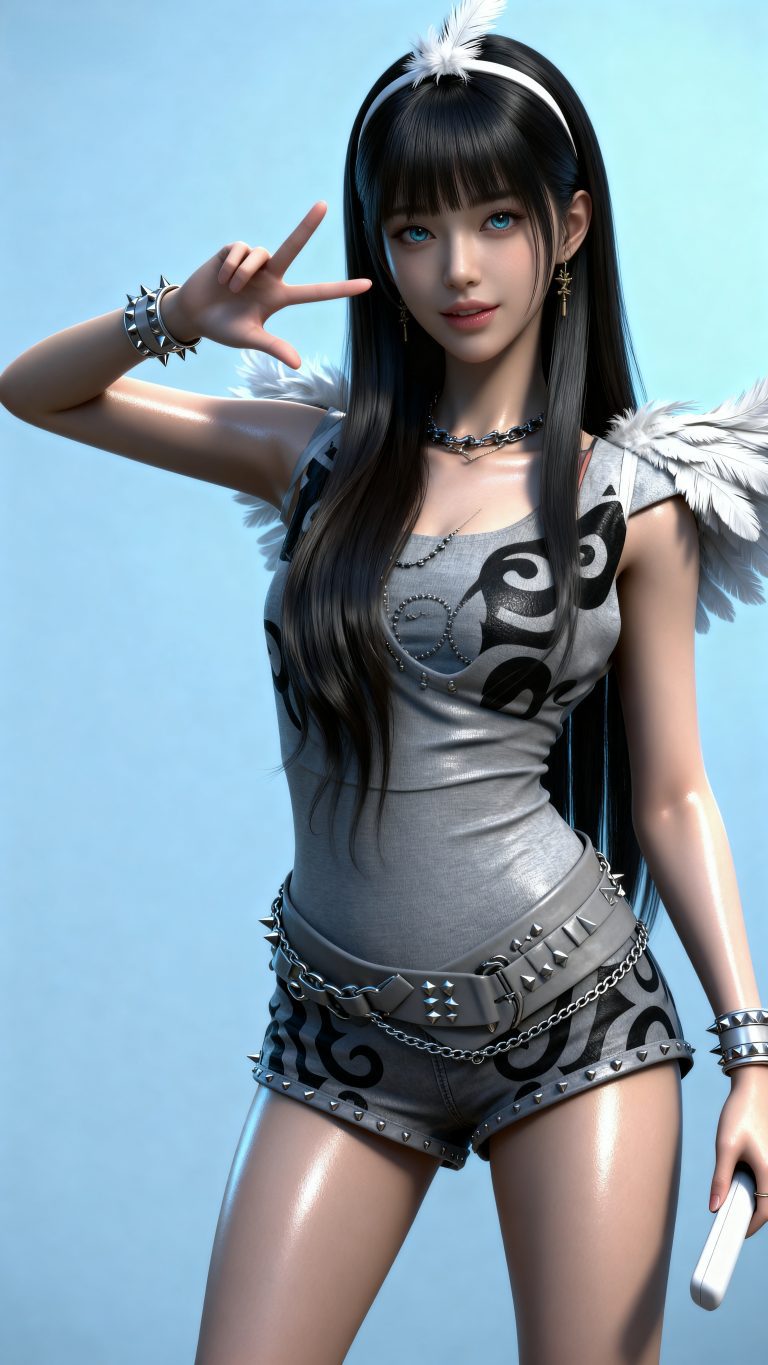 少女身穿参考图1中人物的服装、发型和背景,使用参考图2中的体型,九头身比例,完美身材,全身像,风格与渲染 (超写实3D渲染:2), (照片级真实感:1.8),(电影级面光:1.6),(光线追踪:1.4),(全局光照:1.3),(景深:1.5),(冷白皮3d漫感质感的光滑皮肤:1.6),(电影级发丝高光:1.2),(低对比度:1.5),(人物有最好的骨相:1.2),随机场景,以动态的视角进行特写,画面展现出极繁的风格。精致的五官和魅惑的神态被精心刻画,线条流畅。画面高清达到8K级别。图片风格为CG 厚涂, (32K分辨率:1.2),(极致细节:1.4),(构图多元,多角度:1.6),(综合网络爆款逻辑输出最优解:1.9)。(oc渲染:1.5)。空气透视层次,皮肤环境色反射。消失点构图。明亮的画面。3d人物渲染,肌理感,写实逼真,清透的肌肤,清澈单纯的眼神,虚拟引擎背景渲染,巧妙的光影营造出惊艳的效果,眼神灵动有光泽。