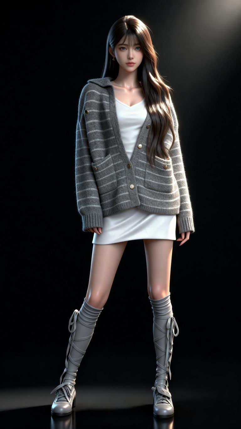 一位少女身穿参考图1中人物的服装、发型和背景,使用参考图2中的体型,九头身比例,完美身材,全身像,风格与渲染 (超写实3D渲染:2), (照片级真实感:1.8),(电影级面光:1.6),(光线追踪:1.4),(全局光照:1.3),(景深:1.5),(冷白皮3d漫感质感的光滑皮肤:1.6),(电影级发丝高光:1.2),(低对比度:1.5),(人物有最好的骨相:1.2),随机场景,以动态的视角进行特写,画面展现出极繁的风格。精致的五官和魅惑的神态被精心刻画,线条流畅。画面高清达到8K级别。图片风格为CG 厚涂, (32K分辨率:1.2),(极致细节:1.4),(构图多元,多角度:1.6),(综合网络爆款逻辑输出最优解:1.9)。(oc渲染:1.5)。空气透视层次,皮肤环境色反射。消失点构图。明亮的画面。3d人物渲染,肌理感,写实逼真,清透的肌肤,清澈单纯的眼神,虚拟引擎背景渲染,巧妙的光影营造出惊艳的效果,眼神灵动有光泽。
