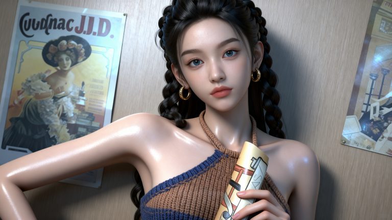 一位少女身穿参考图1中人物的服装、发型和背景,使用参考图2中的体型,九头身比例,完美身材,全身像,风格与渲染 (超写实3D渲染:2), (照片级真实感:1.8),(电影级面光:1.6),(光线追踪:1.4),(全局光照:1.3),(景深:1.5),(冷白皮3d漫感质感的光滑皮肤:1.6),(电影级发丝高光:1.2),(低对比度:1.5),(人物有最好的骨相:1.2),随机场景,以动态的视角进行特写,画面展现出极繁的风格。精致的五官和魅惑的神态被精心刻画,线条流畅。画面高清达到8K级别。图片风格为CG 厚涂, (32K分辨率:1.2),(极致细节:1.4),(构图多元,多角度:1.6),(综合网络爆款逻辑输出最优解:1.9)。(oc渲染:1.5)。空气透视层次,皮肤环境色反射。消失点构图。明亮的画面。3d人物渲染,肌理感,写实逼真,清透的肌肤,清澈单纯的眼神,虚拟引擎背景渲染,巧妙的光影营造出惊艳的效果,眼神灵动有光泽。