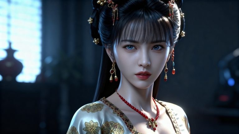 一位少女身穿参考图1中人物的服装、发型和背景,使用参考图2中的体型,九头身比例,完美身材,全身像,风格与渲染 (超写实3D渲染:2), (照片级真实感:1.8),(电影级面光:1.6),(光线追踪:1.4),(全局光照:1.3),(景深:1.5),(冷白皮3d漫感质感的光滑皮肤:1.6),(电影级发丝高光:1.2),(低对比度:1.5),(人物有最好的骨相:1.2),随机场景,以动态的视角进行特写,画面展现出极繁的风格。精致的五官和魅惑的神态被精心刻画,线条流畅。画面高清达到8K级别。图片风格为CG 厚涂, (32K分辨率:1.2),(极致细节:1.4),(构图多元,多角度:1.6),(综合网络爆款逻辑输出最优解:1.9)。(oc渲染:1.5)。空气透视层次,皮肤环境色反射。消失点构图。明亮的画面。3d人物渲染,肌理感,写实逼真,清透的肌肤,清澈单纯的眼神,虚拟引擎背景渲染,巧妙的光影营造出惊艳的效果,眼神灵动有光泽。
