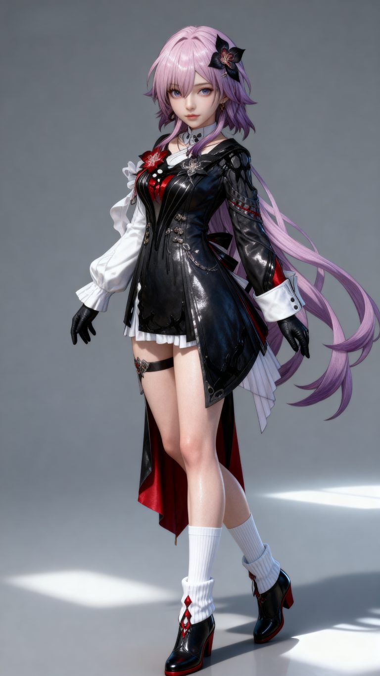 一位少女身穿参考图1中人物的服装、发型和背景,使用参考图2中的体型,九头身比例,完美身材,全身像,风格与渲染 (超写实3D渲染:2), (照片级真实感:1.8),(电影级面光:1.6),(光线追踪:1.4),(全局光照:1.3),(景深:1.5),(冷白皮3d漫感质感的光滑皮肤:1.6),(电影级发丝高光:1.2),(低对比度:1.5),(人物有最好的骨相:1.2),随机场景,以动态的视角进行特写,画面展现出极繁的风格。精致的五官和魅惑的神态被精心刻画,线条流畅。画面高清达到8K级别。图片风格为CG 厚涂, (32K分辨率:1.2),(极致细节:1.4),(构图多元,多角度:1.6),(综合网络爆款逻辑输出最优解:1.9)。(oc渲染:1.5)。空气透视层次,皮肤环境色反射。消失点构图。明亮的画面。3d人物渲染,肌理感,写实逼真,清透的肌肤,清澈单纯的眼神,虚拟引擎背景渲染,巧妙的光影营造出惊艳的效果,眼神灵动有光泽。