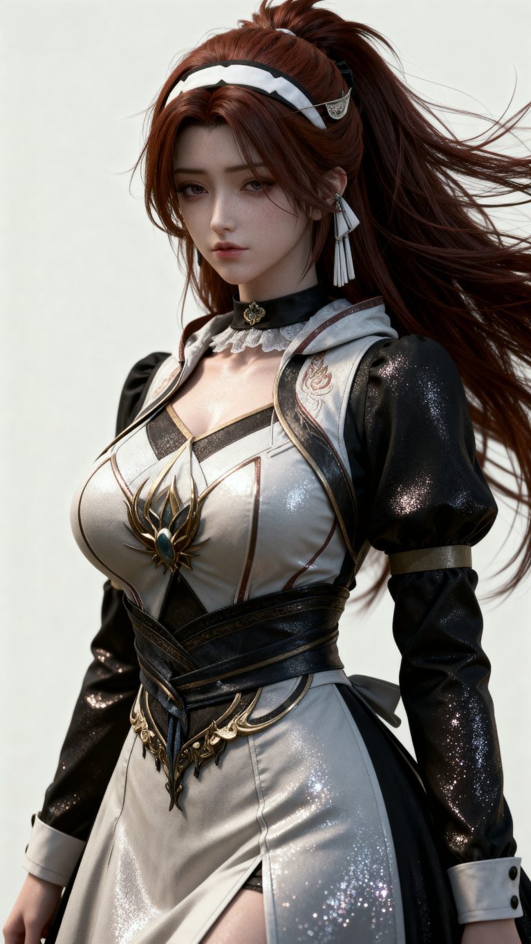 一位少女,参考图2的服装、发型、发色和背景,参考图1的体型身材和脸,风吹起长发飘逸,远景和特写结合,长发稍稍凌乱,面容精致立体,皮肤细腻白皙,表情糅合冷酷与忧郁清冷,细微神态楚楚动人,背景烘托电影氛围,面部特写捕捉慵懒动态,写实笔触刻画发丝层次与皮肤通透感,CG厚涂增强光影质感,立体光,魅力十足,无瑕娇嫩肌肤,完美身材比例,九头身,时尚、朝气蓬勃,3D渲染技术,oc渲染,专业摄影光照,大级构建画面,全画幅清晰对焦,使图像达到32K壁纸级质感,闪粉布朗运动,瓷光肌理(SSS次表面3层透光),量子发丝系统(12万根独立动力学)。光线追踪。