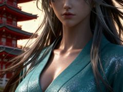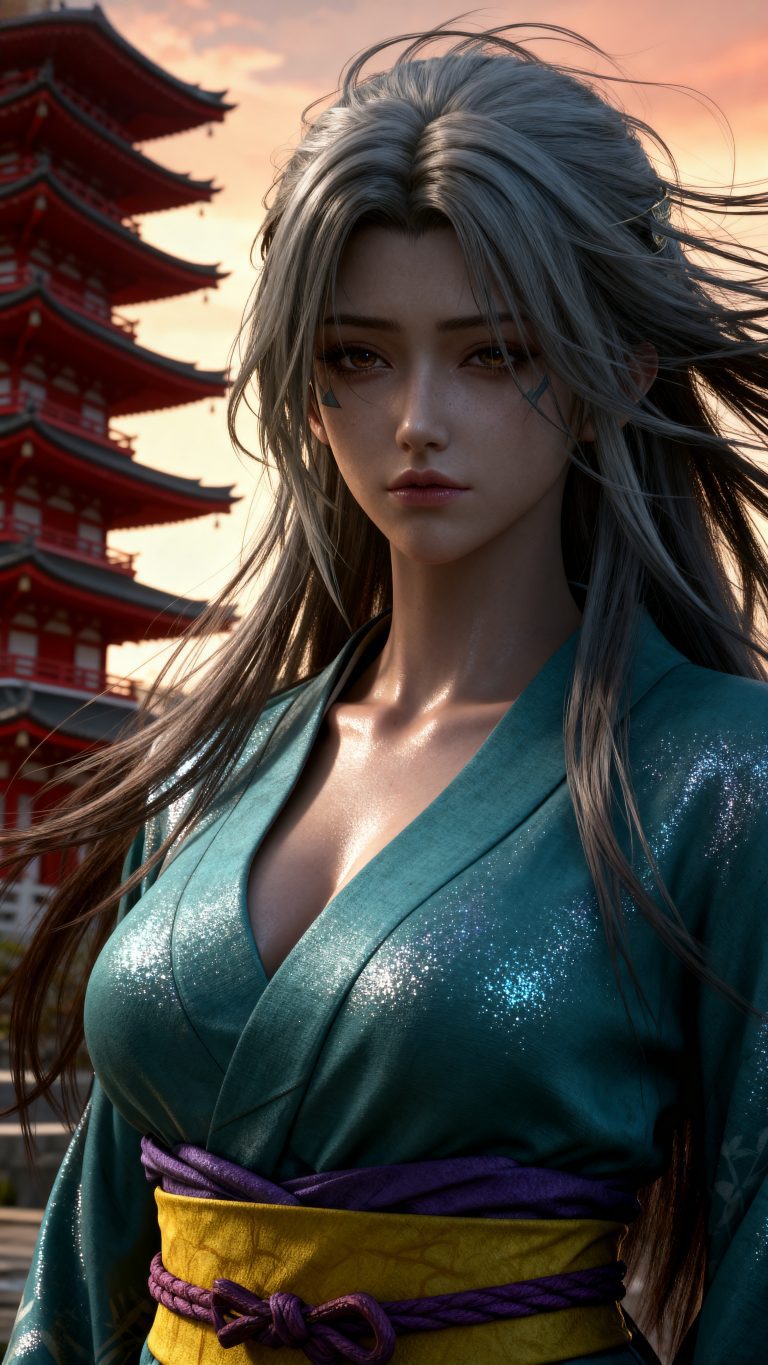 一位少女,参考图2的服装、发型、发色和背景,参考图1的体型身材和脸,不要大头,风吹起长发飘逸,远景和特写结合,长发稍稍凌乱,面容精致立体,皮肤细腻白皙,表情糅合冷酷与忧郁清冷,细微神态楚楚动人,背景烘托电影氛围,面部特写捕捉慵懒动态,写实笔触刻画发丝层次与皮肤通透感,CG厚涂增强光影质感,立体光,魅力十足,无瑕娇嫩肌肤,完美身材比例,九头身,时尚、朝气蓬勃,3D渲染技术,oc渲染,专业摄影光照,大级构建画面,全画幅清晰对焦,使图像达到32K壁纸级质感,闪粉布朗运动,瓷光肌理(SSS次表面3层透光),量子发丝系统(12万根独立动力学)。光线追踪。