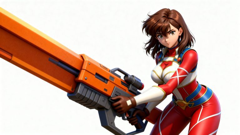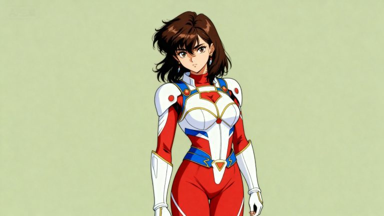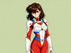 一位少女,90年代OVA动画重绘,严格参考图1的画风和体型,参考图2的服装样式、发型、发色,90年代OVA动画画面质感,赛璐璐风格渲染,简单背景。纯手绘。裸眼3D效果。