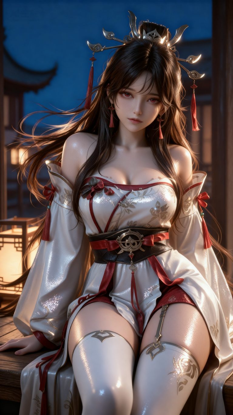 一位少女,严格参考图2的服装样式、发型、发色和背景,参考图1的体型身材和头身比例,身材匀称,风吹起头发飘逸,远景和特写结合,头发稍稍凌乱,面容精致立体,带着妩媚,媚骨天成,皮肤细腻白皙,露出魅惑的表情,细微神态楚楚动人,背景烘托电影氛围,写实笔触刻画发丝层次与皮肤通透感,CG厚涂增强光影质感,立体光,魅力十足,无瑕娇嫩肌肤,完美身材比例,完美头身比例,九头身,时尚、朝气蓬勃,3D渲染技术,oc渲染,专业摄影光照,大级构建画面,全画幅清晰对焦,使图像达到32K壁纸级质感,闪粉布朗运动,瓷光肌理(SSS次表面3层透光),量子发丝系统(12万根独立动力学)。光线追踪。裸眼3D效果。