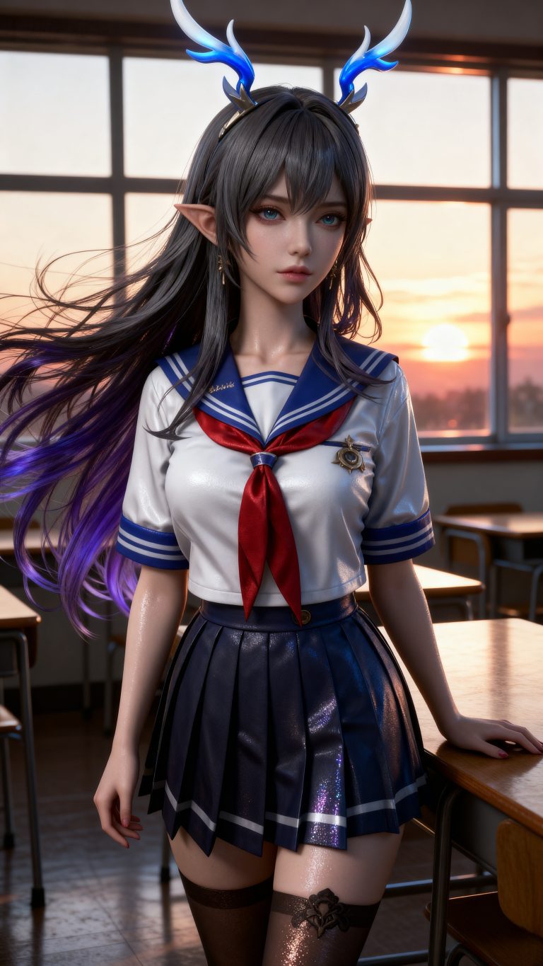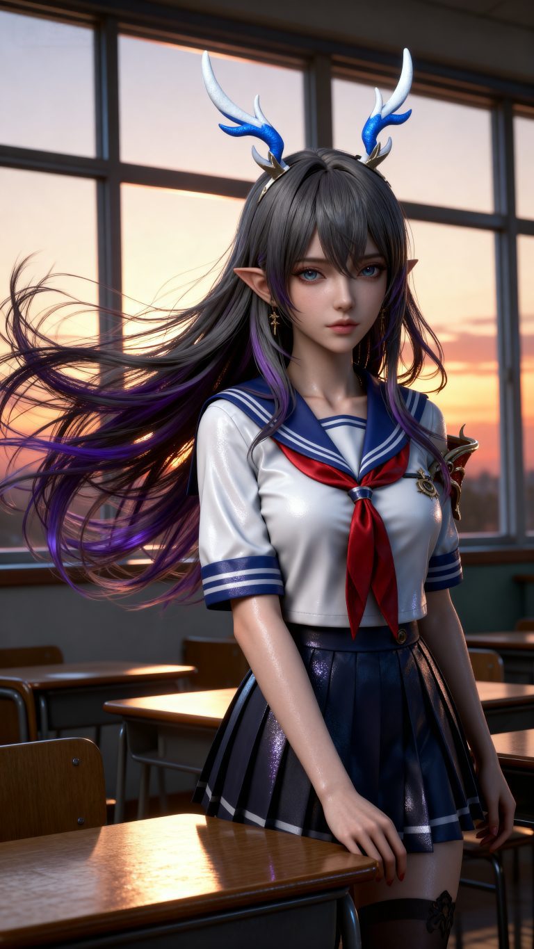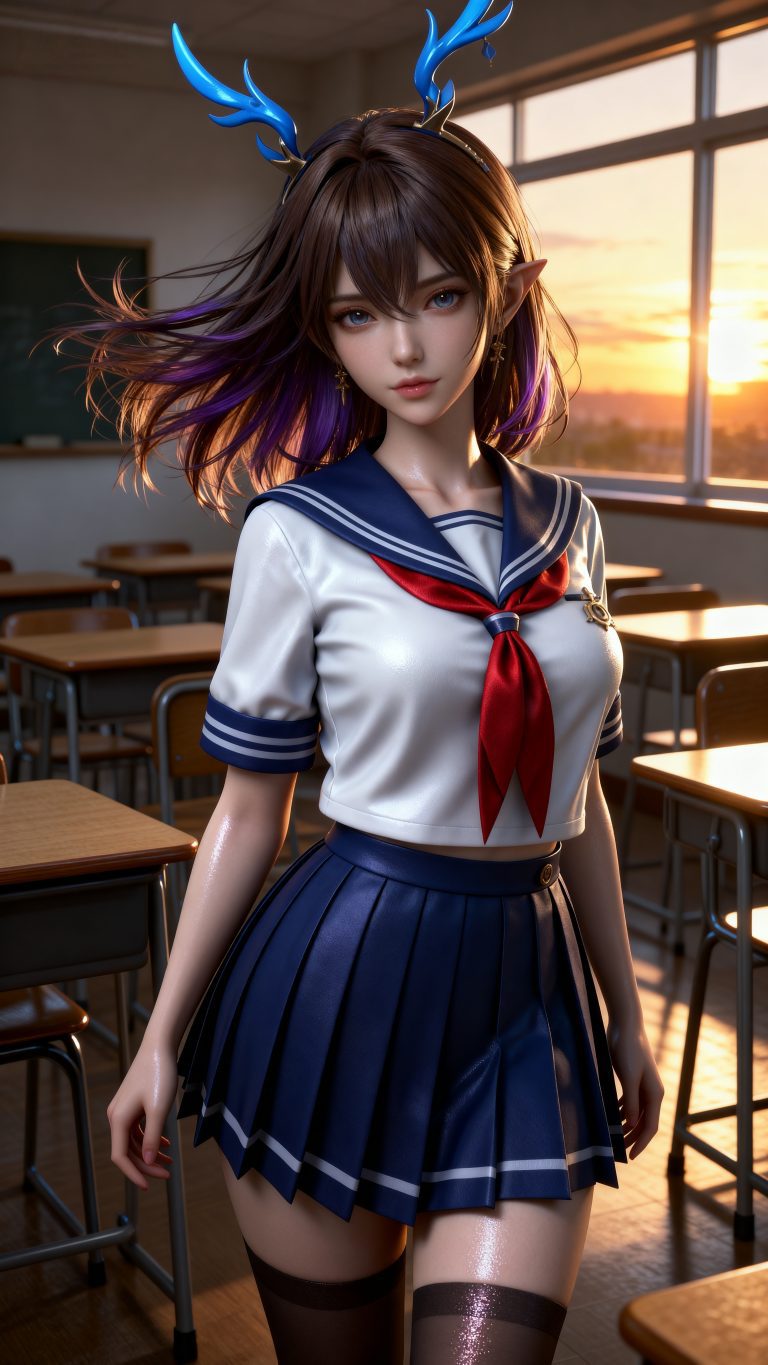 一位少女,严格参考图2的服装样式、发型、发色和背景,参考图1的体型身材和头身比例,身材匀称,风吹起头发飘逸,远景和特写结合,头发稍稍凌乱,面容精致立体,带着妩媚,媚骨天成,皮肤细腻白皙,露出魅惑的表情,细微神态楚楚动人,背景烘托电影氛围,写实笔触刻画发丝层次与皮肤通透感,CG厚涂增强光影质感,立体光,魅力十足,无瑕娇嫩肌肤,完美身材比例,完美头身比例,九头身,时尚、朝气蓬勃,3D渲染技术,oc渲染,专业摄影光照,大级构建画面,全画幅清晰对焦,使图像达到32K壁纸级质感,闪粉布朗运动,瓷光肌理(SSS次表面3层透光),量子发丝系统(12万根独立动力学)。光线追踪。裸眼3D效果。