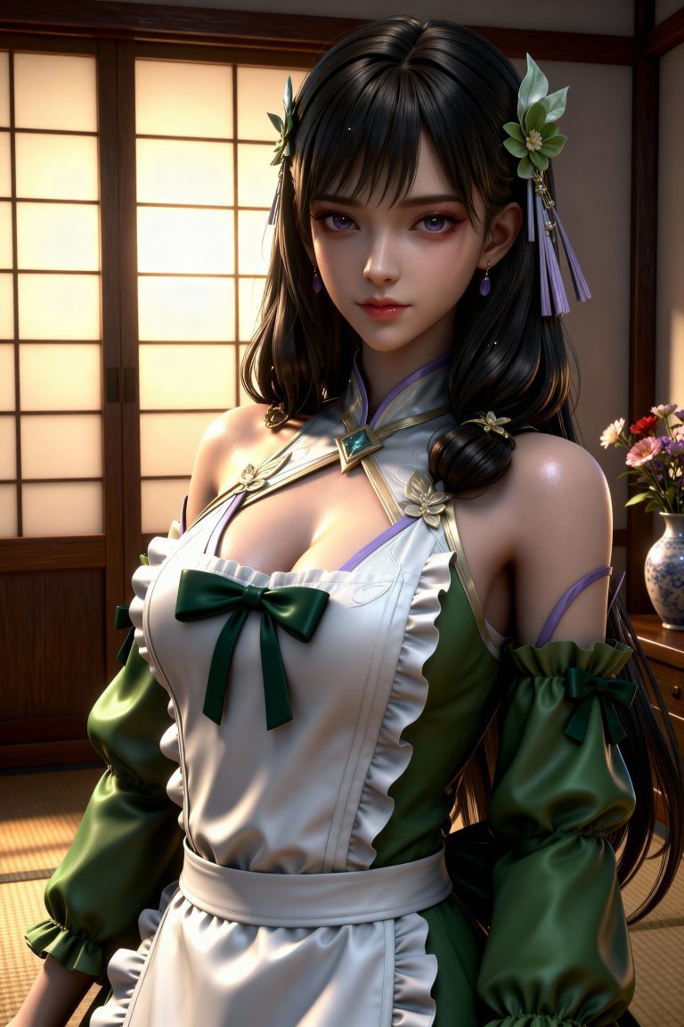 一位少女,严格参考图2的服装样式、发型、发色和背景,参考图1的风格,远景和特写结合,面容精致立体,带着妩媚,媚骨天成,皮肤细腻白皙,露出魅惑的表情,细微神态楚楚动人,背景烘托电影氛围,写实笔触刻画发丝层次与皮肤通透感,CG厚涂增强光影质感,立体光,魅力十足,无瑕娇嫩肌肤,模特身材,完美头身比例,九头身,大长腿,时尚、朝气蓬勃,3D渲染技术,oc渲染,专业摄影光照,大级构建画面,全画幅清晰对焦,使图像达到32K壁纸级质感,闪粉布朗运动,瓷光肌理(SSS次表面3层透光),量子发丝系统(12万根独立动力学)。光线追踪。裸眼3D效果。